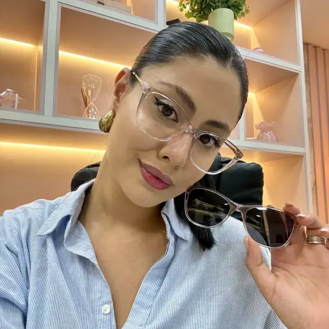Você conhece os óculos de grau sem plaquetas? O modelo Lidia 2.0 2 em 1 possui formato retangular, clássico para toda mulher.