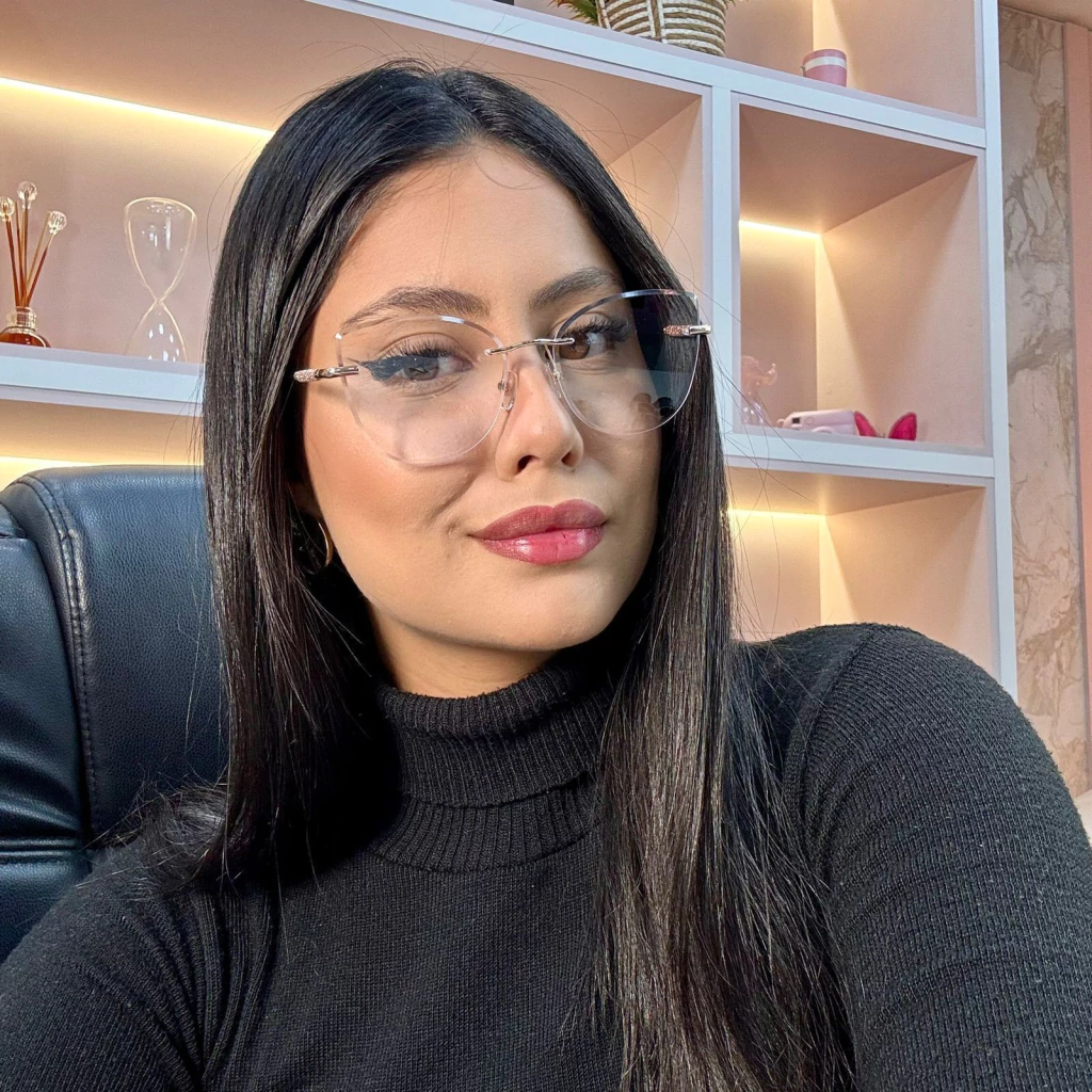 O design das lentes em formato de gatinho é especialmente indicado para rostos quadrados e alongados, pois suavizam levemente as laterais, embora sejam igualmente versáteis e combinem bem com outros tipos de rosto.